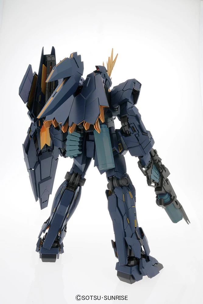 Le PG Banshee Norn partage la même structure que le PG Unicorn Gundam, mais au lieu des Gatlings et Bazooka du Unicorn, vous obtenez ce gigantesque sac à dos Norn, ainsi que le bouclier géant et des pièces pour construire le lanceur du fusil. Le Banshee est également livré avec une immense base d’exposition et des autocollants Detron pour marquer la sculpture.