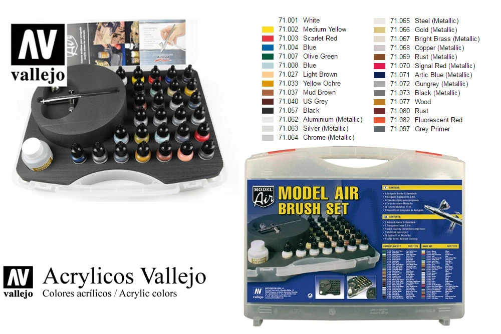 Description du produit « VALLEJO 50012 MODEL AIR 71172 COLOR SET AND AIRBRUSH »